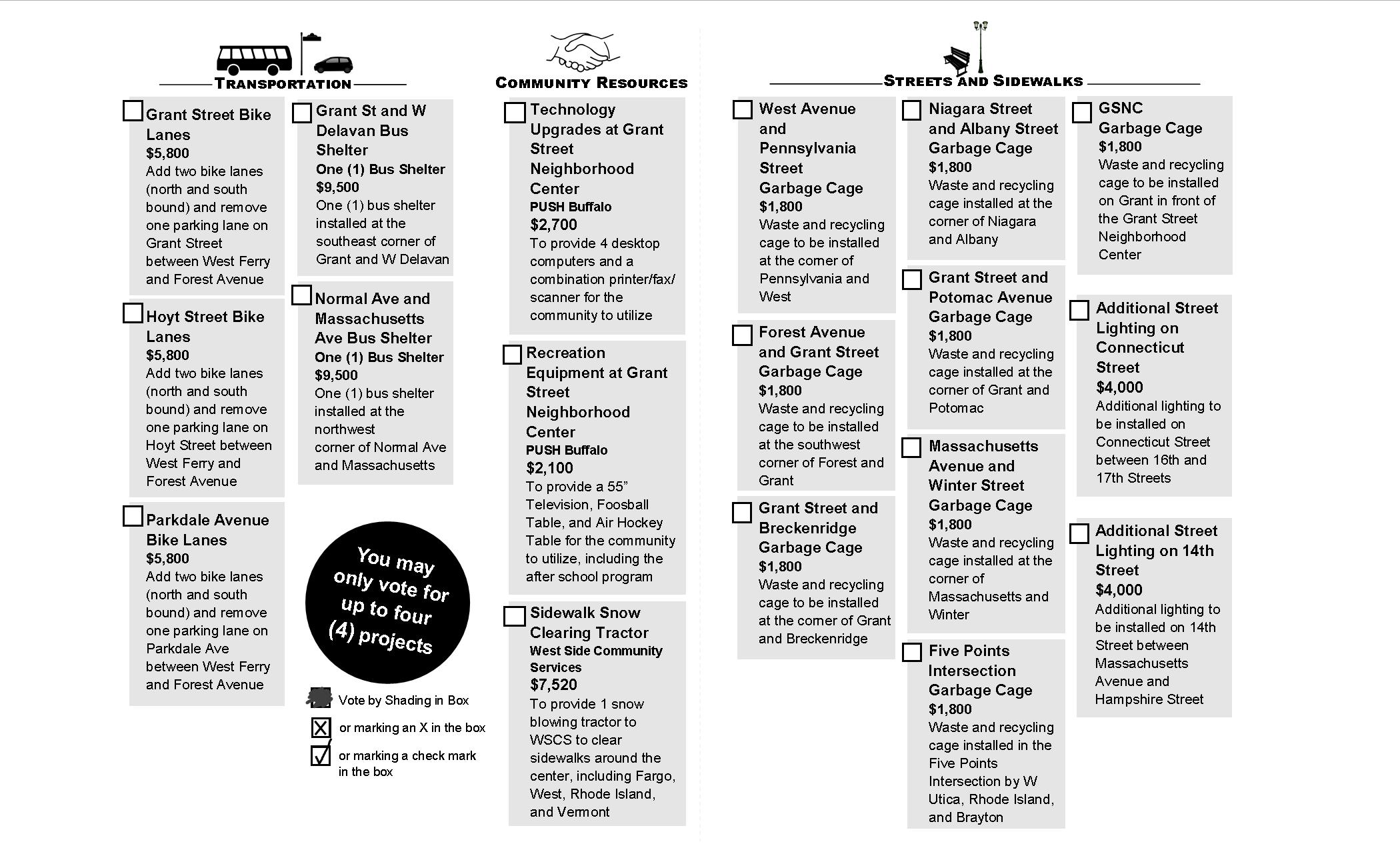 A PDF of the ballot can be found here: PB Buffalo Ballot